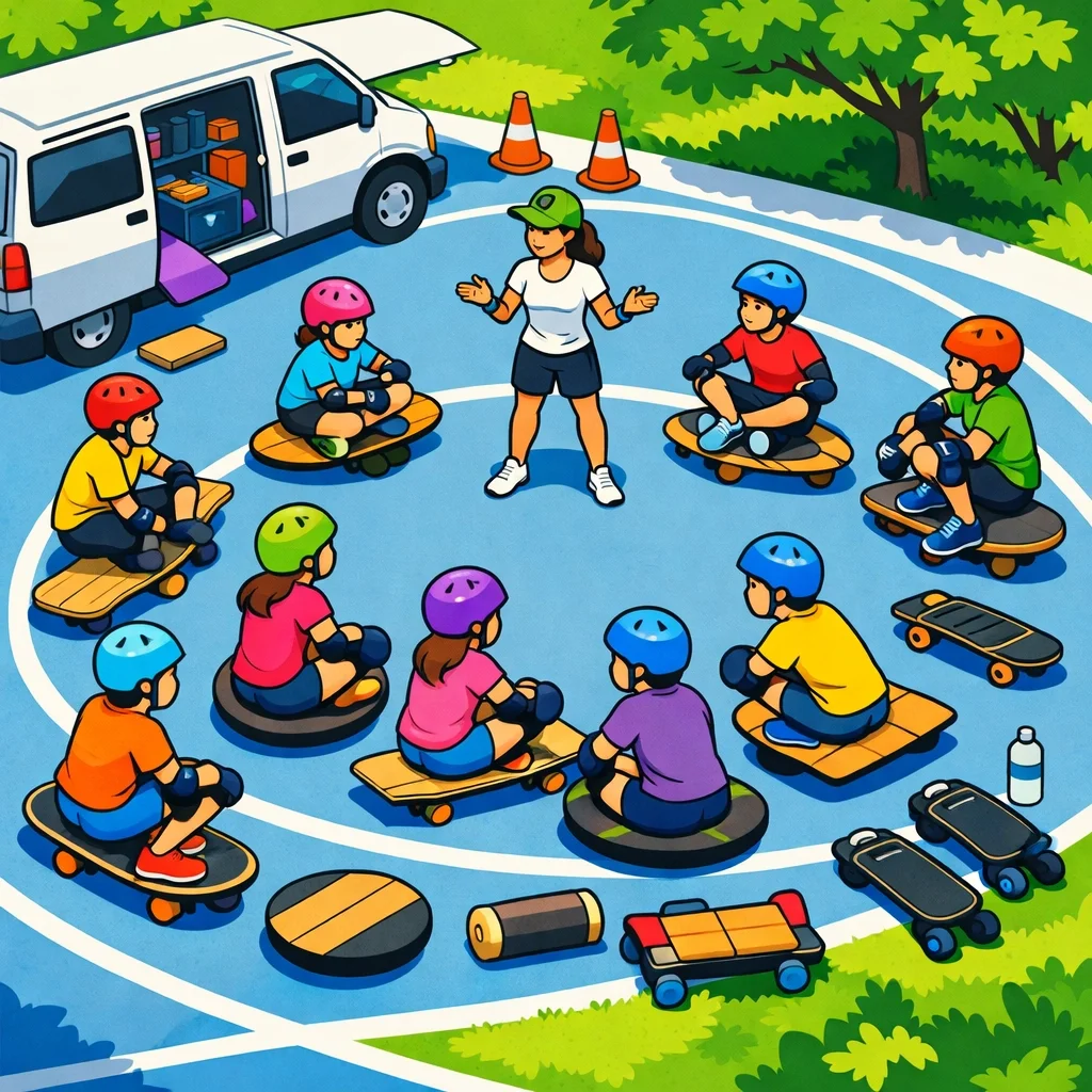 Every student wears a helmet and protective pads (wrist guards, knee pads, elbow pads). We bring all safety gear with us. Our founder is trained in trauma-aware facilitation and maintains small group sizes to prioritize both physical and emotional safety.